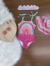 Conjunto Infantil Arco iris de Cropped e saia + bolsa - Kukiê 77408