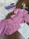 Conjunto Trio Blusa coton + Colete rosa pelos + Short Saia - CINTI 12421