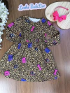Vestido Infantil Manga Longa Estampa Animal e Letras- Momi - H4956