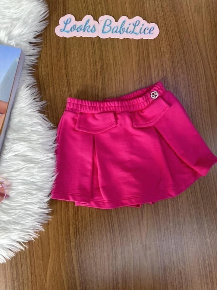 Short Saia Infantil Pink em Malha Aós Elastico Drapeado