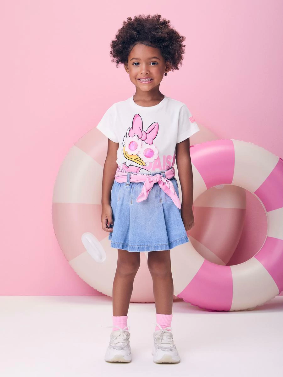 Além de super fofa, a blusa tem um toque leve que combina com qualquer look. Quem disse que moda infantil não pode ser prática e divertida? A Margarida e sua patinha estão aqui para provar que o estilo pode ser muito divertido!