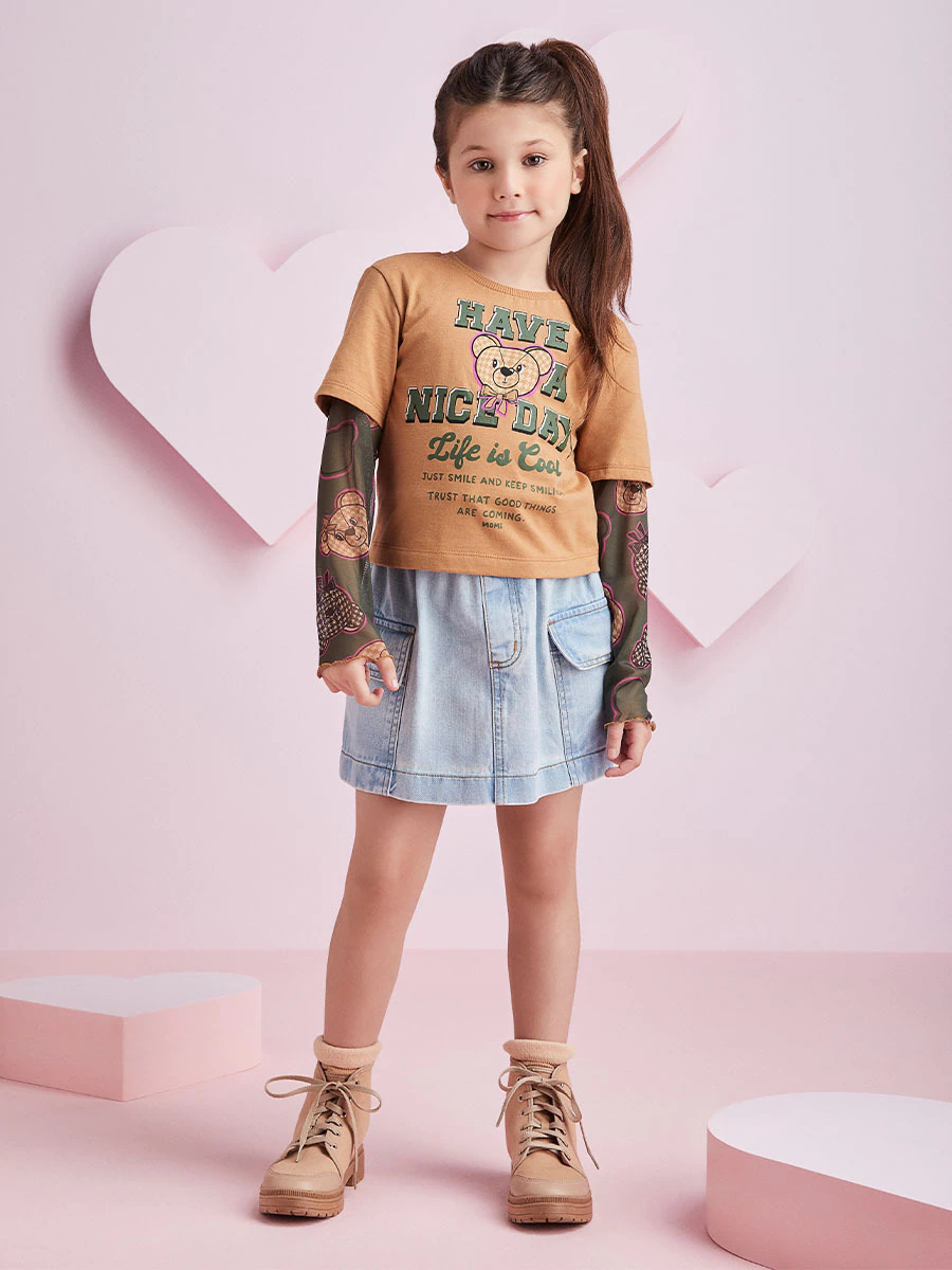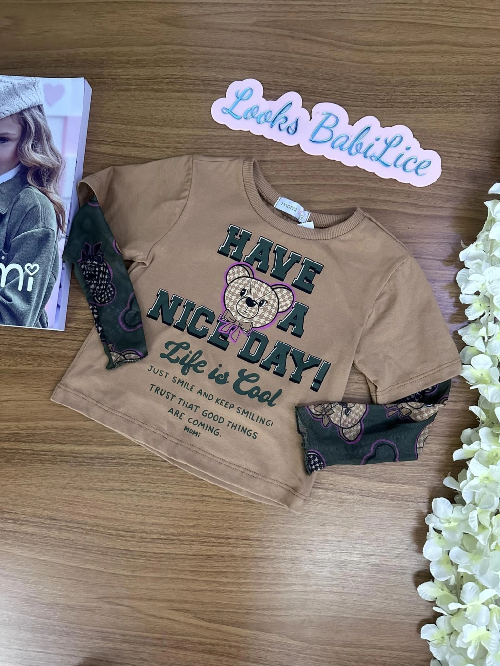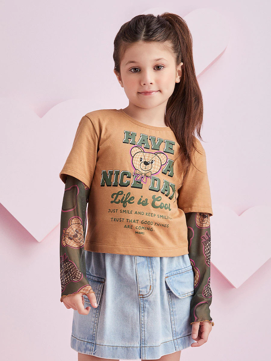 Blusa Infantil Com Mangas Estampadas Conectadas- Estampa Frontal - Momi (Ref. H5342)