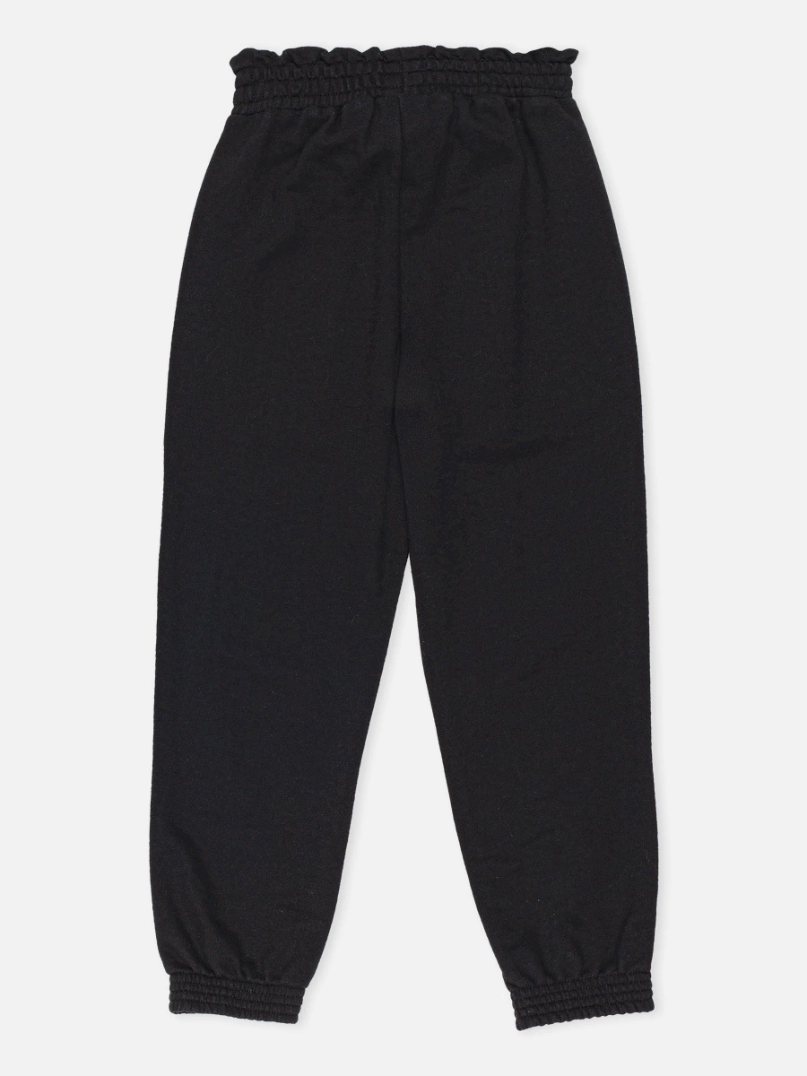 Calça em moletom, bolsos frontais, faixa no cós para amarração e barra de elástico.