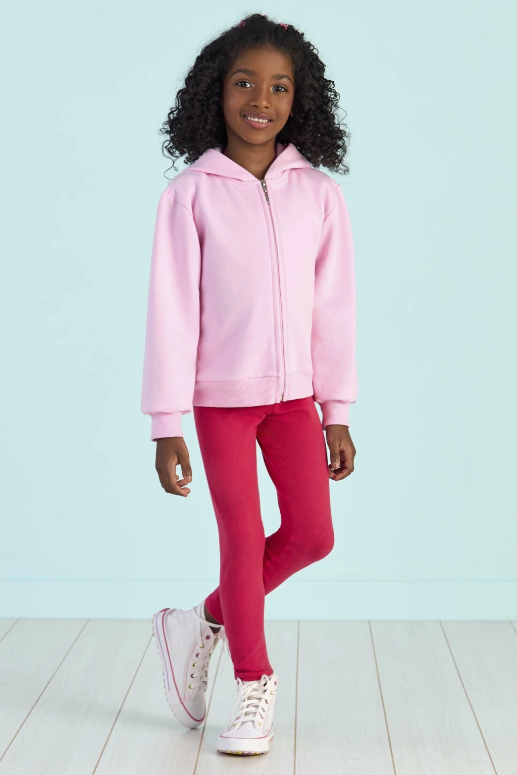 Desperte a alegria e a criatividade da sua pequena com o Casaco com capuz Rosa em Moleton com bordado da marca em strass. Este look é perfeito para as meninas que adoram brincar com estilo!