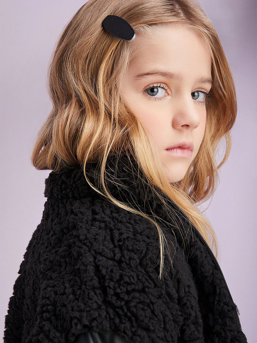 O casaco preto Infantil Momi é uma peça essencial para o inverno das meninas. Confeccionado Em Couro Ecologico nas Mangas, e Pêlo no Restante, a peça oferece estilo e conforto. Ref.: H4984