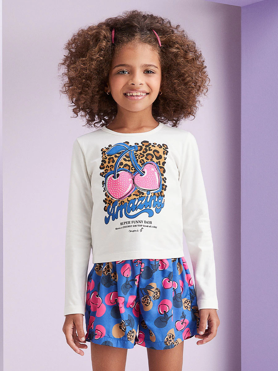 Conjunto composto por: Conjunto Composto por Blusa Cotom Branco e Short Estampada- Momi - H5392