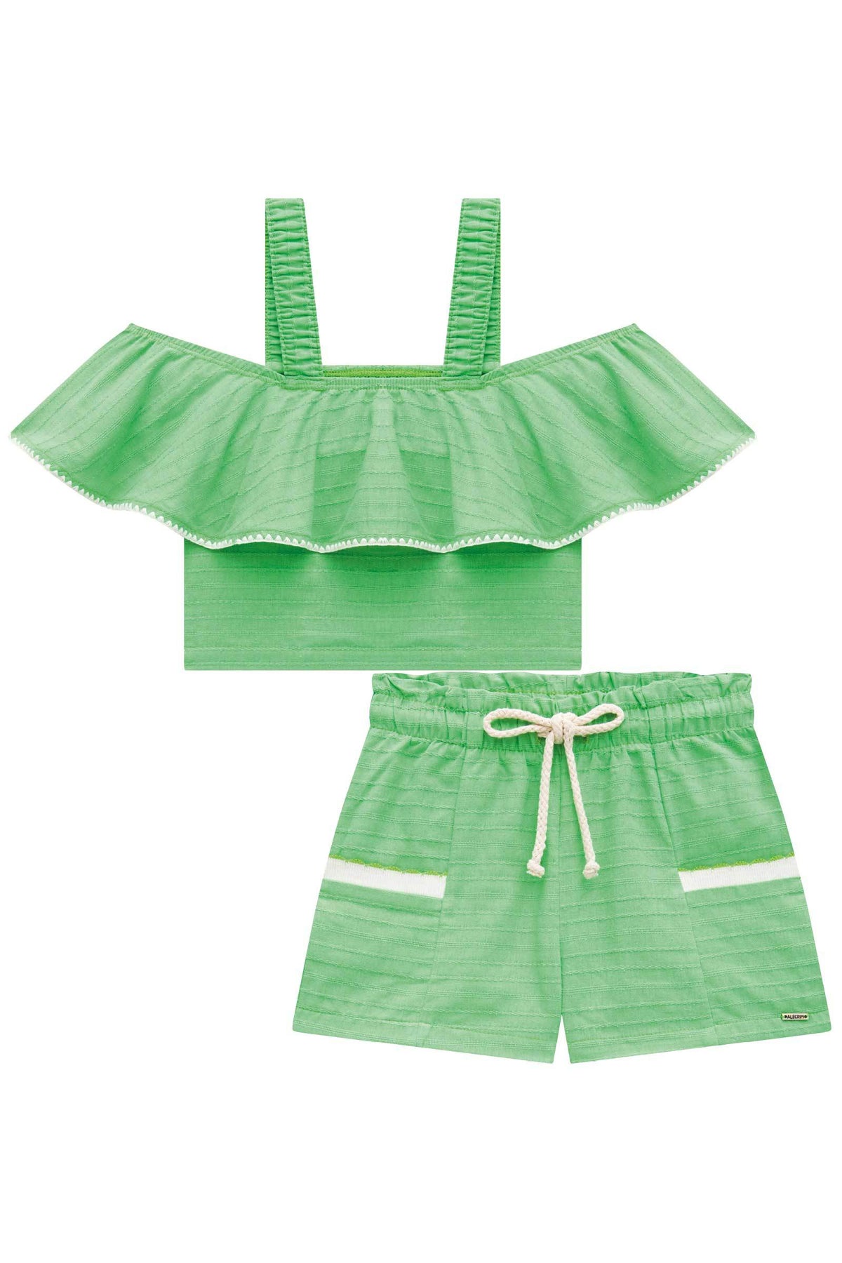 Conjunto Infantil Conjunto de Blusa Cropped e Shorts em Linho Maquinetado 73919 Kukiê
