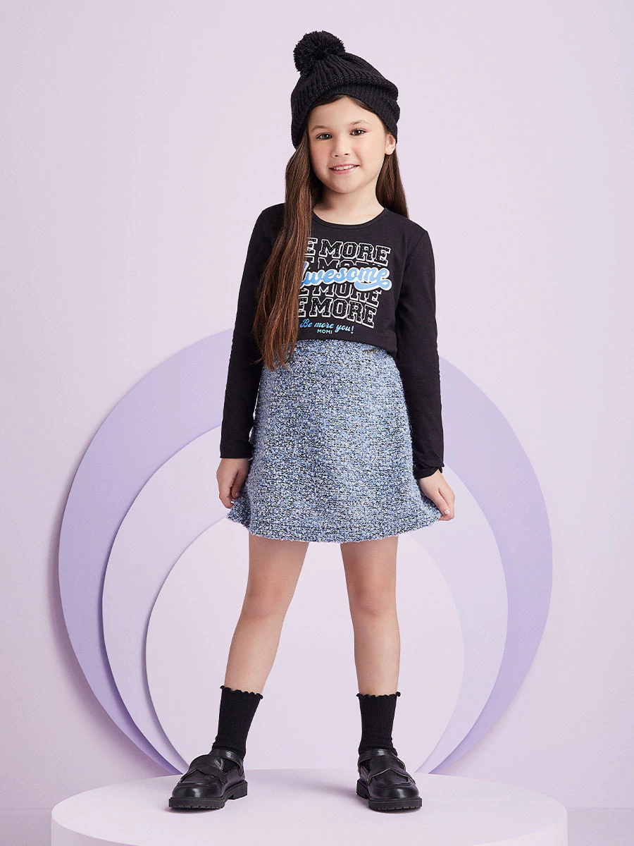 Conjunto composto por: Blusao com Saia e Short dinterno Estampa Frontal- Momi - H5373
