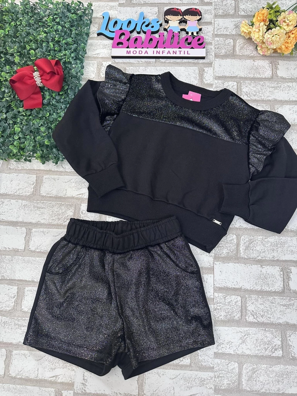 Prepare-se para deixar as pequenas ainda mais elegantes com nosso Conjunto Infantil Moletom com Babado em Brilho! Esse look incrível vem com uma blusa de moletom franelado que tem um babado brilhante que vai fazer qualquer menina se sentir uma verdadeira estrela. E o shorts com cós elástico? Ah, é um tecido mega especial com brilho que combina com o babado da blusa, trazendo um charme extra!