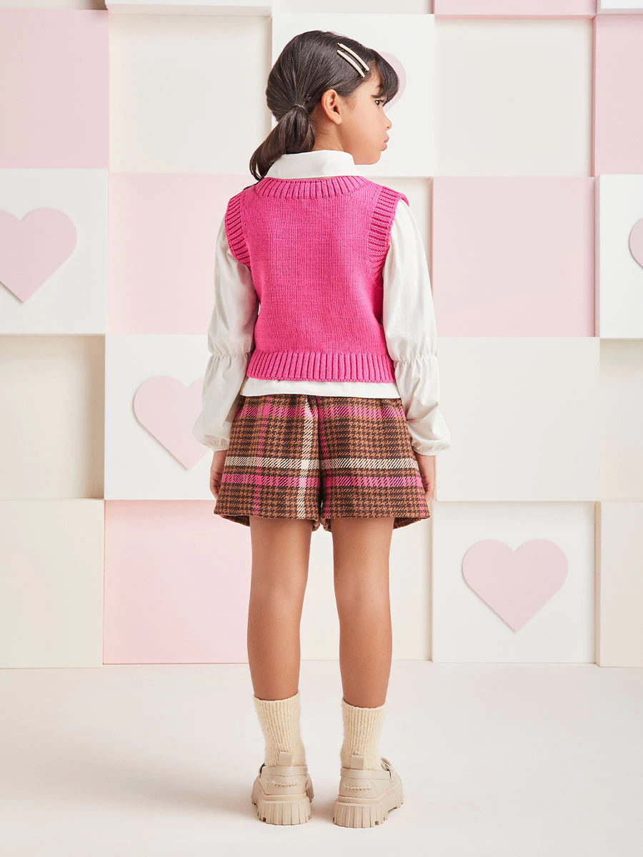 Conjunto Infantil Short Tweed Xadrez Blusa Bata Manga Longa - Momi (Ref.H5383)