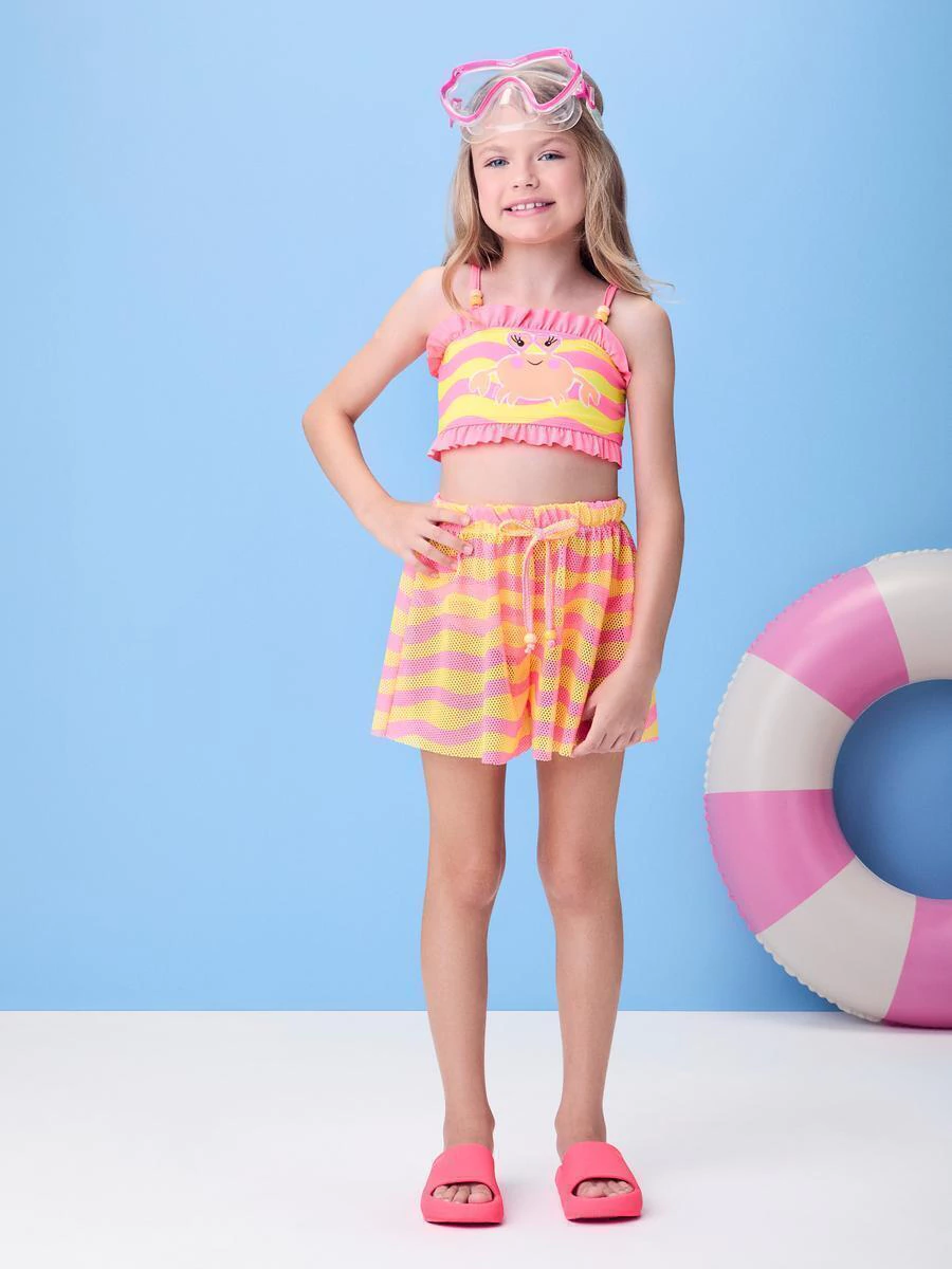 Short Infantil Menina Saída de Praia Listrado Laranja - Momi - H6695