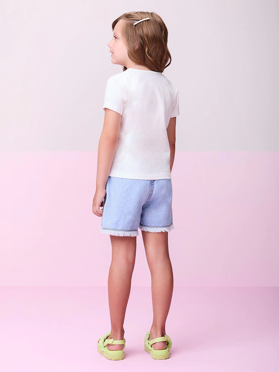 Explore o estilo e o conforto com nosso short em jeans lavado, perfeito para dias de brincadeira sob o sol!