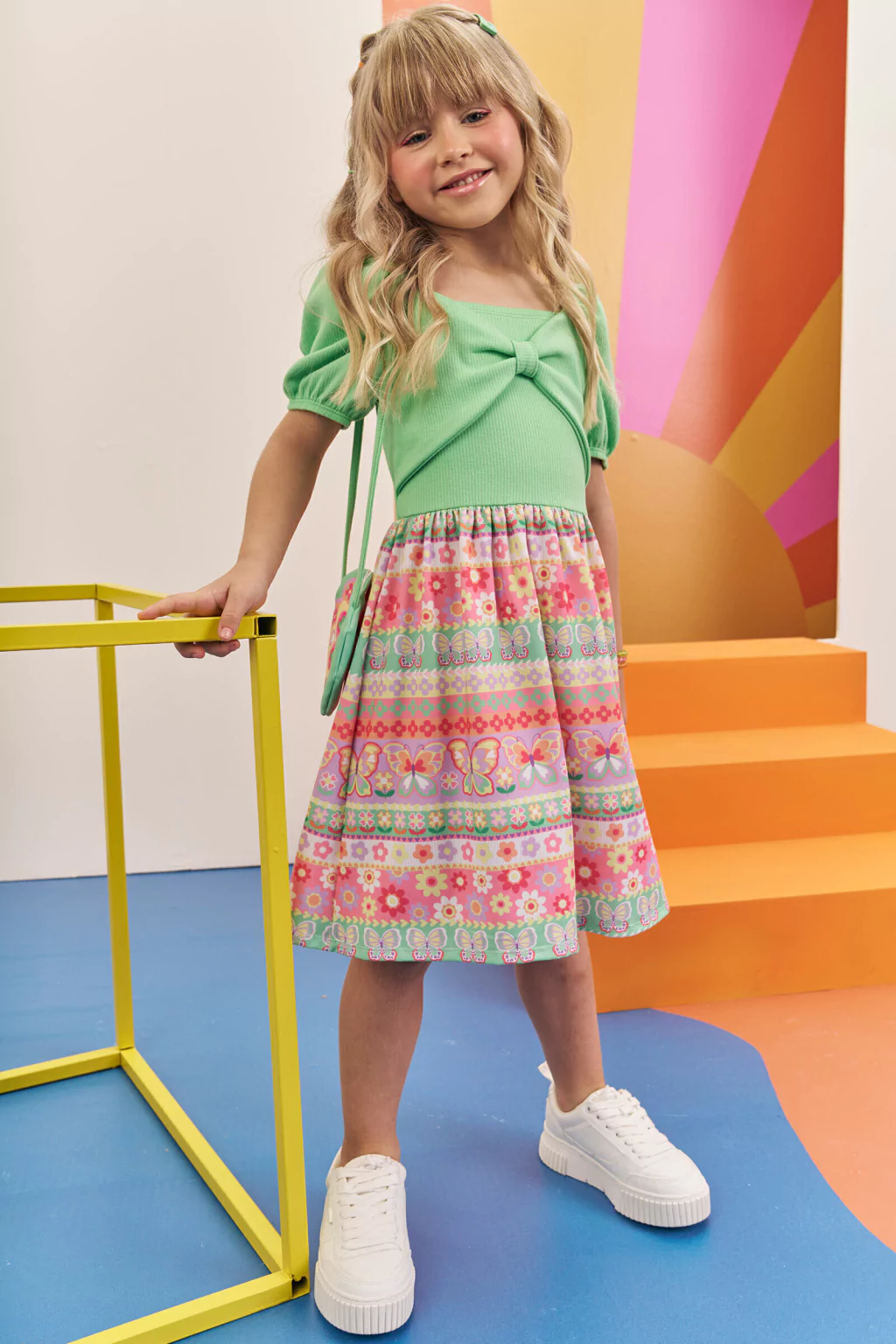 Vestido em Canelado Trançado e Malha Power. Acompanha Bolsa 75615 Infanti