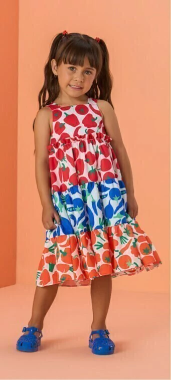 Vestido de alças, com costuras e cores estilo MARIAS e todo estampado.
