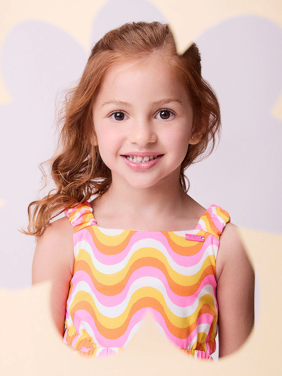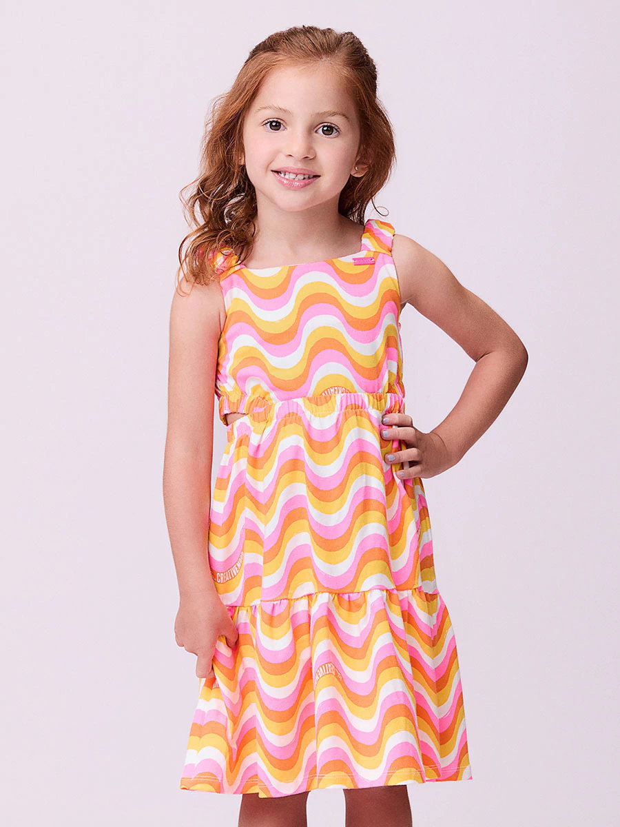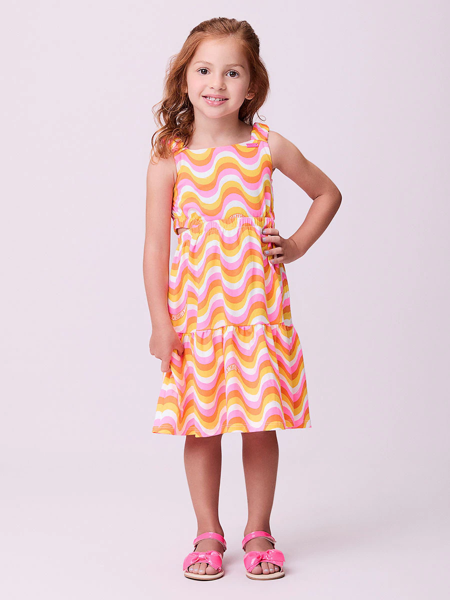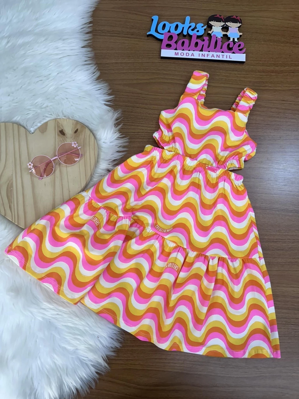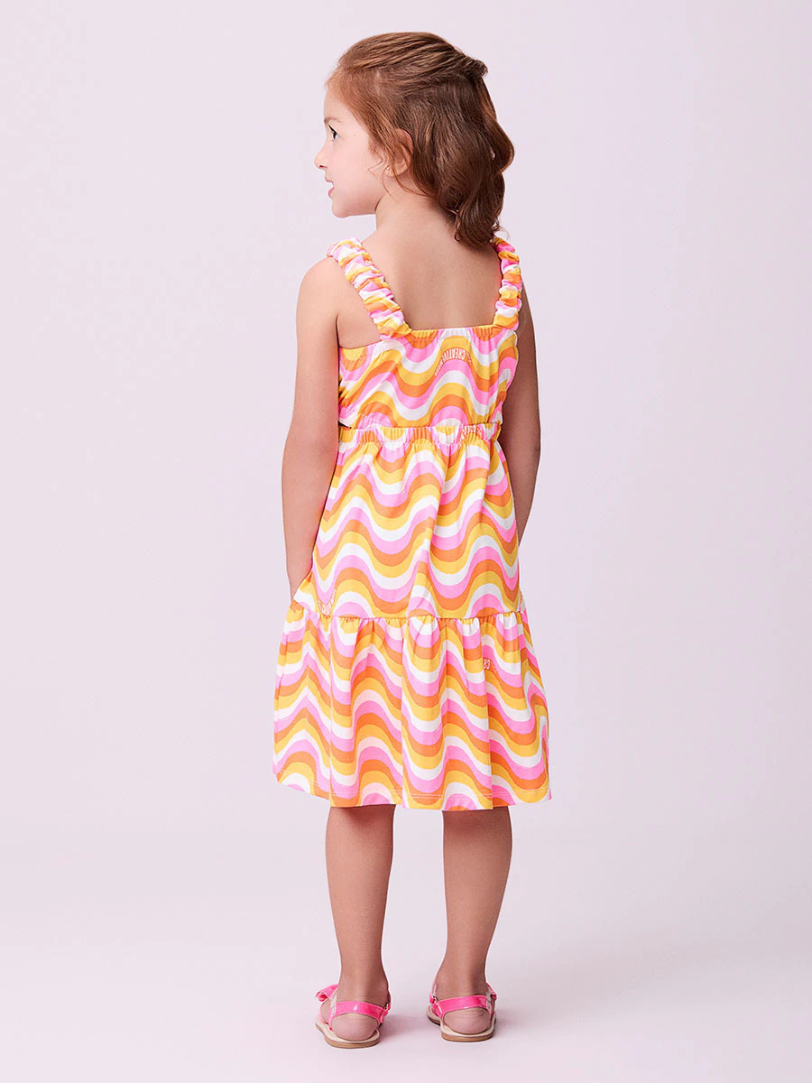 Deixe as meninas arrasarem com este vestido encantador de ondas multicolorida! As alças com babados e a cintura com elástico garantem o máximo de conforto, enquanto a saia com camadas traz movimento e leveza para os dias de diversão. Ideal para as girls que adoram um visual vibrante e cheio de estilo. Ref.: J5885