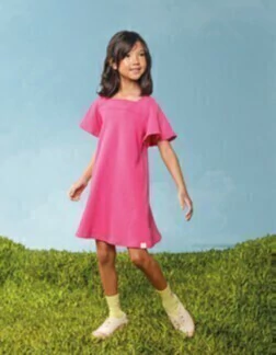 Vestido em malha quadriculada, mangas godê, decote quadrado e modelagem soltinha.